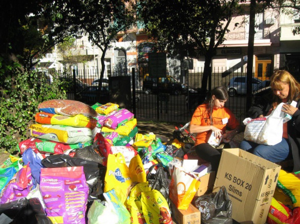 El sábado 6 de abril se llevó a cabo la primera colecta del año por los camperitos. Miles de personas se acercaron a colaborar, logrando que se reunieran más de 5 toneladas de alimento balanceado. Hasta Pedro Aznar fue a darle una mano a los camperitos. A causa del temporal acaecido en La Plata, el punto de esa cuidad fue organizado y administrado por padrinos del refugio, quienes recibieron alrededor de 500 kilos de alimento que fue destinado a Santuario Almitas Libres, a Una Mano Amiga Voluntariado Animal y a Voluntariado Altos de San Lorenzo. Del resto de los puntos, fueron separados en total, 1200 kilos de alimento, también para la ciudad de La Plata, que se repartieron el fin de semana del 13 de abril.