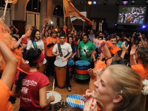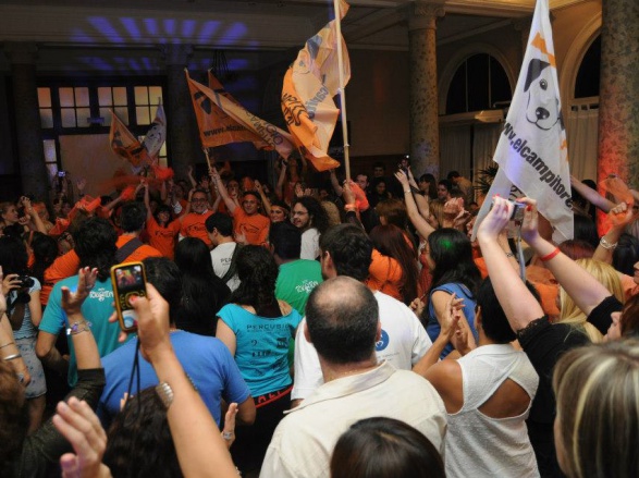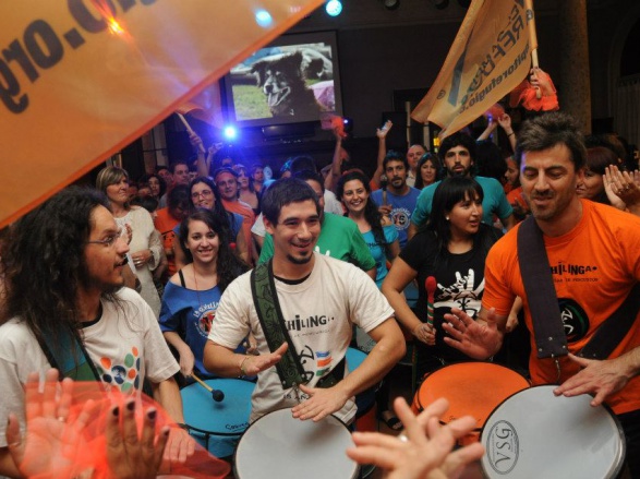 El homenaje a todos los padrinos y madrinas vino de la mano de las imágenes de las colectas, la caminata, las visitas, las adopciones de todo este año de trabajo. Fue el momento más emotivo y conmovedor de la noche. Luego vinieron los sorteos de todos los premios que gentilmente nos donaron y para que todos pudieran conocerse y divertirse como niños, luego del postre, llego el juego “eligiendo al parâ€, donde los invitados tenÃan que encontrar el padrino o madrina con el mismo nombre del camperito que ellos tuvieran. Tanta fue la emoción y el descontrol que hubo muchos ganadores y para desempatar, Anita organizó el juego de la silla. Entre baile y baile, Anabella, Gaby y Flo bailaron la coreo del flashmob y muchas madrinas y padrinos se prendieron al ritmo del “Gangstyleâ€. El cierre de esta gran fiesta vino de la mano de La Chilinga y su batucada sin igual, que entró al salón con los organizadores y voluntarios bailando y cantando con banderas y estandartes del Campito. Al ritmo de “Ole, ole, ole, El campito es un sentimiento, no se puede pararâ€, terminó esta velada única e irrepetible.
