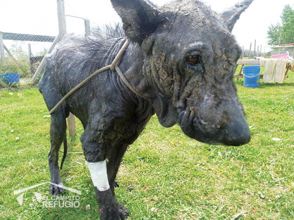 Uno de los cambios más increíbles fue el de nuestro adorado Junior. Fue rescatado de las calles de Fuerte Apache y su estado era simplemente escalofriante. Estaba completamente pelado, muy flaquito y enfermo. Tenía los valores renales y los glóbulos blancos elevadísimos, mientras que los glóbulos rojos estaban por el piso. Nos preguntamos cuánto tiempo estuvo deambulando en ese estado, esperando que alguien le tendiera una mano. Cuántos habrán pasado por su lado, ignorándolo. Gracias a los tratamientos y a los cuidados exhaustivos, Junior se convirtió en un viejito bello, fuerte y hermoso… Otro perro.