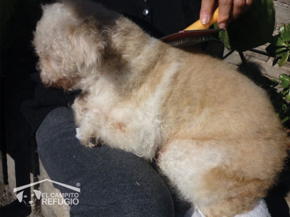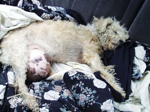 Pelusita tenía dueños. Lamentablemente, y como pasa en muchos casos, quienes debían cuidar de ella dejaron que llegara a ese estado sin ningún tipo de atención veterinaria. Cuando acudimos a su rescate, la dueña se negaba a entregarla y pedía que la devolviéramos cuando ya estuviera recuperada. Su estado era sencillamente desesperante. El tumor que Pelusita tenía en una de sus mamas, pesaba más que ella y no sabíamos que tan agresivo podía llegar a ser. Pero Pelu no sólo tenía un tumor que la estaba matando, sino que además estaba llena de pulgas y extremadamente débil. Luego de una operación de tres horas de duración, el tumor pudo ser extraído. El pronóstico de Pelusita no era bueno, pero tampoco era malo. Es decir, el tumor podía volver a manifestarse en algún otro órgano, pero también existía la posibilidad de que no volviera a aparecer. Después de tanto dolor y de tanto abandono Pelu, al fin, estaba lista para irse en adopción. Pero necesitaba una familia que supiera atender sus necesidades y que pudiera acompañarla y contenerla si el tumor volvía a manifestarse. Parecía algo tan lejano… Y sin embargo, nuestro anhelo se hizo realidad. Y Pelusita, nuestra gladiadora, encontró el amor en los brazos de una mamá humana que la cuida y la respeta como siempre debió ser. Es por eso que, hoy, podemos decir que Pelusa tiene una verdadera familia.