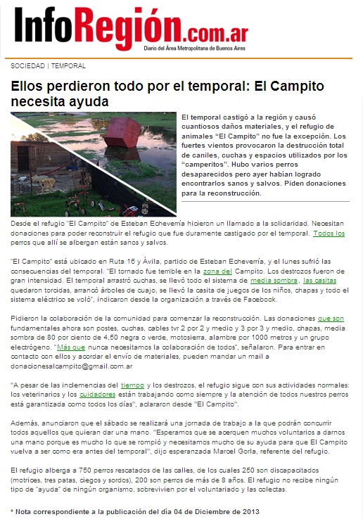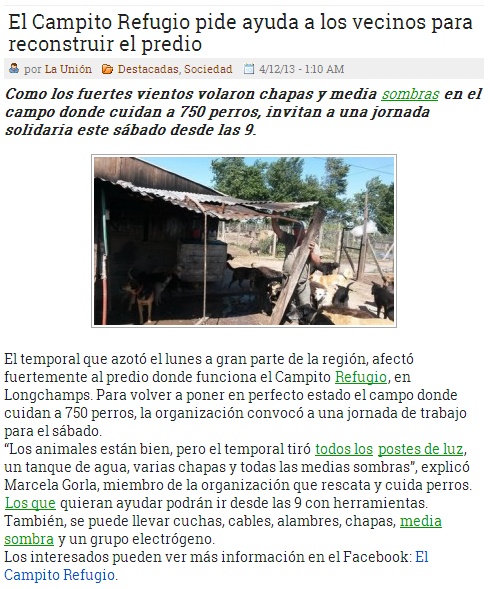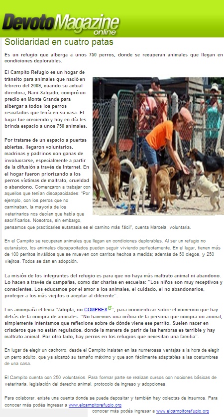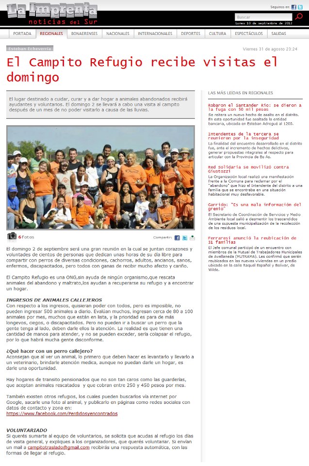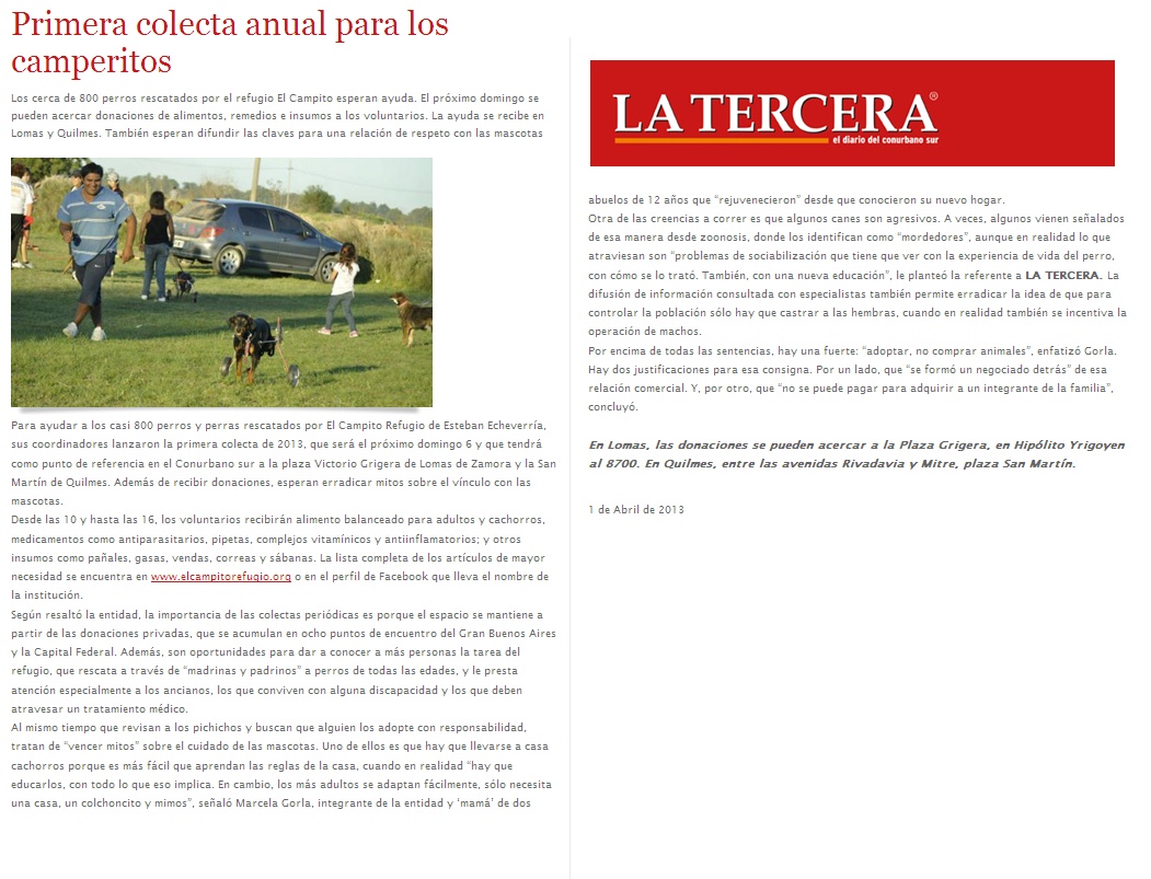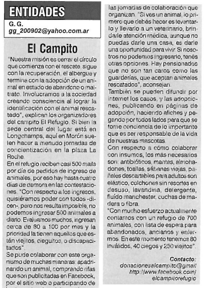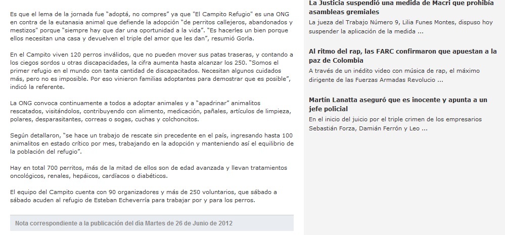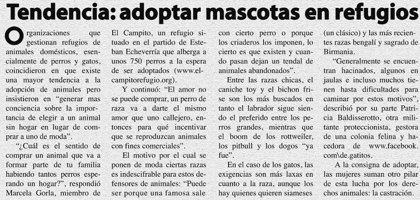 Estas son algunas de las notas publicadas en medios gráficos, donde contamos nuestras historias, experiencias y actividades.