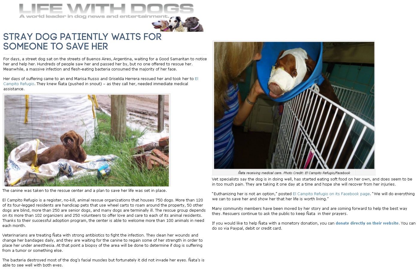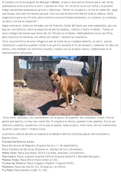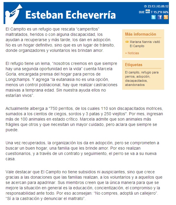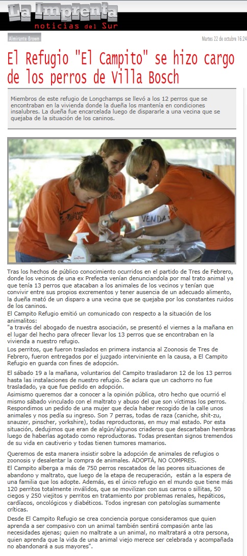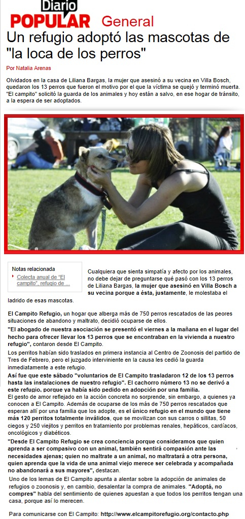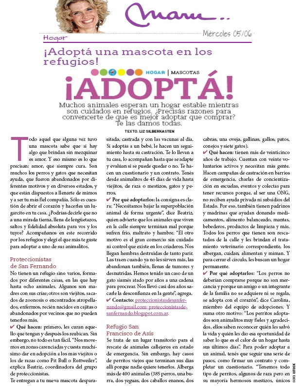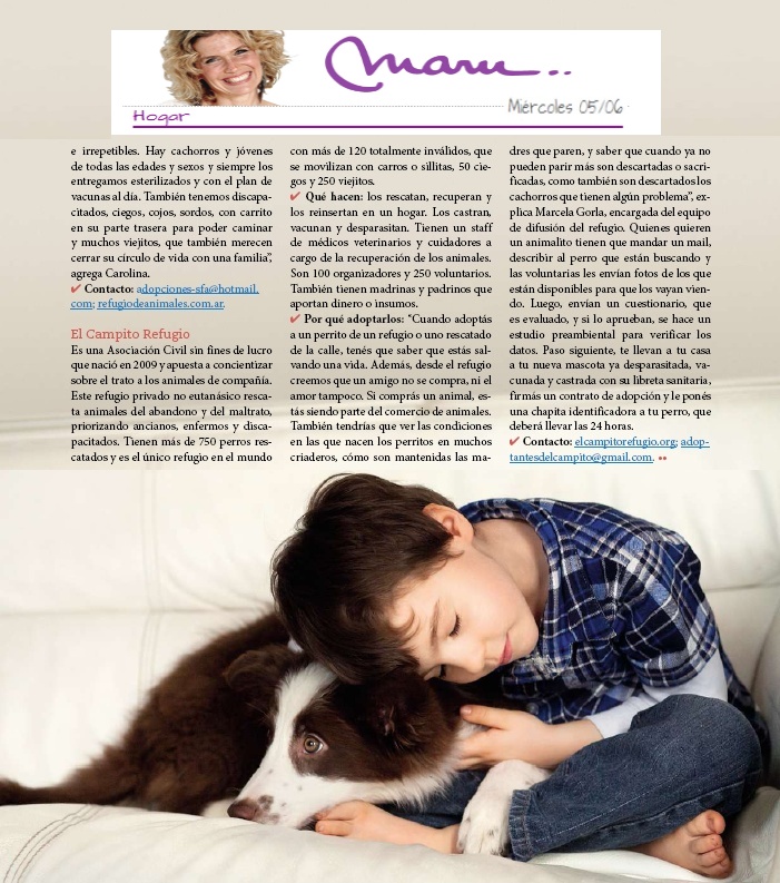 Mariana Nannis visit贸 el refugio y don贸 1000 kg. de alimento - Julio 2012